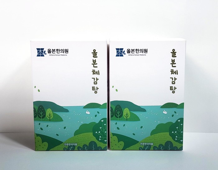 형태/종류 올본한의원 처방약 포장상자 B형 삼면 단상자재질/인쇄사양 RIV 350g / 원색 4도 / 무광코팅 / 삼면접착사이즈